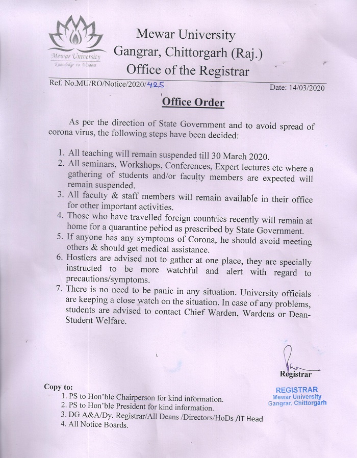 Office order regarding outbreak of Corona Virus (Covid-2019)